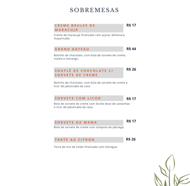 Importante: É necessário fazer reserva de mesa e escolha do prato principal antecipadamente, pelo menos um dia antes da data desejada (para que possamos proporcionar uma experiência gastronômica saborosa e pontual).